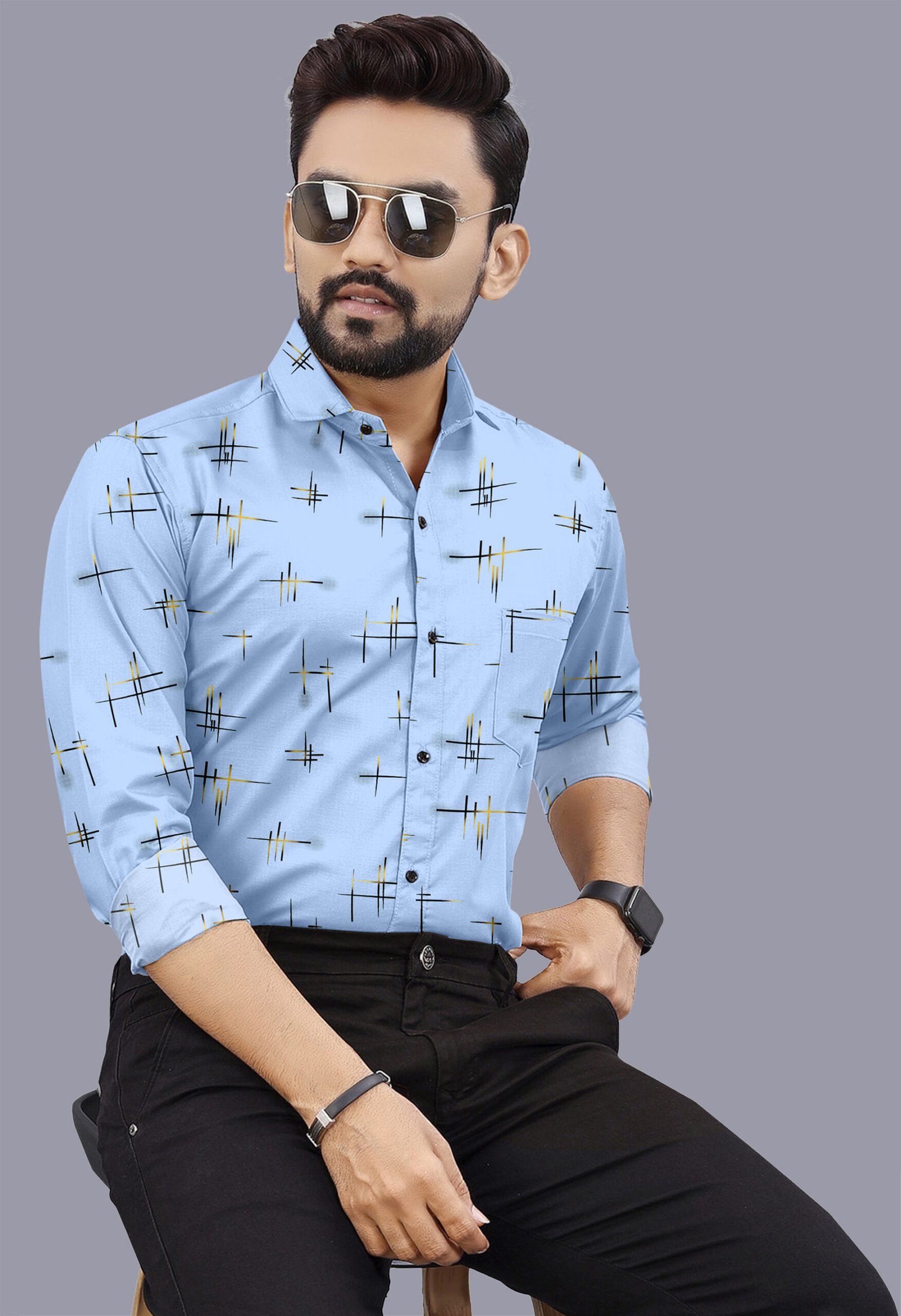Be the first to review “Sky Blue Printed Casual Shirt for Men”